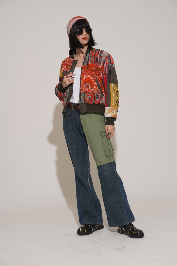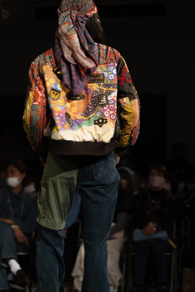 リアルクローズを意識し、ミリタリーとヒッピースタイルを掛け合わせたMA1を制作しました。